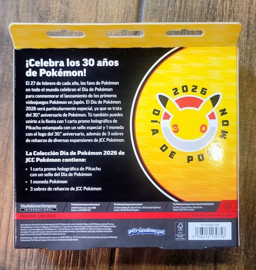 Ver todos los detallesCelebremos el 30 aniversario de pokemon!. Set Pokemon Day en Español! Incluye una promo de Pikachu, un código de JCC, una moneda y 3 sobres de llam...